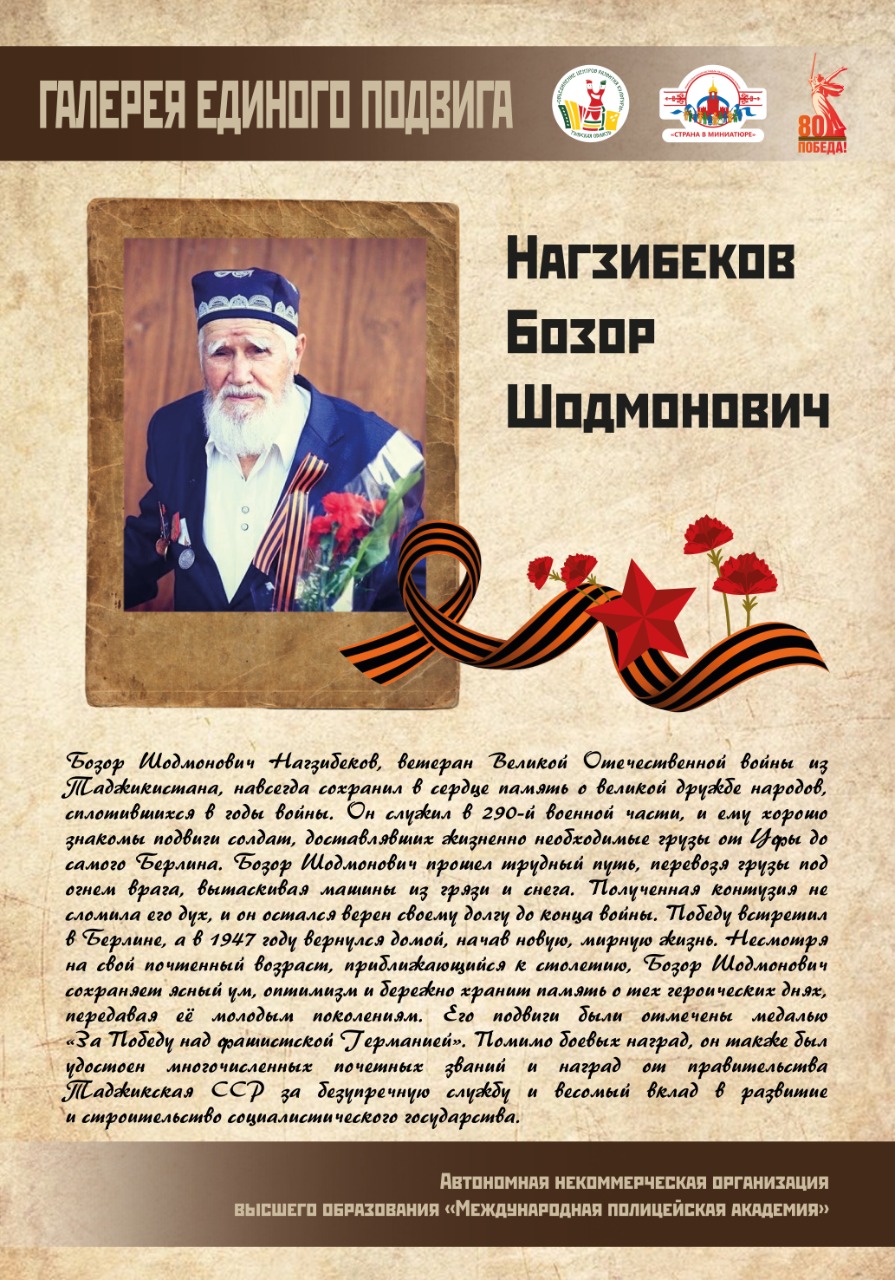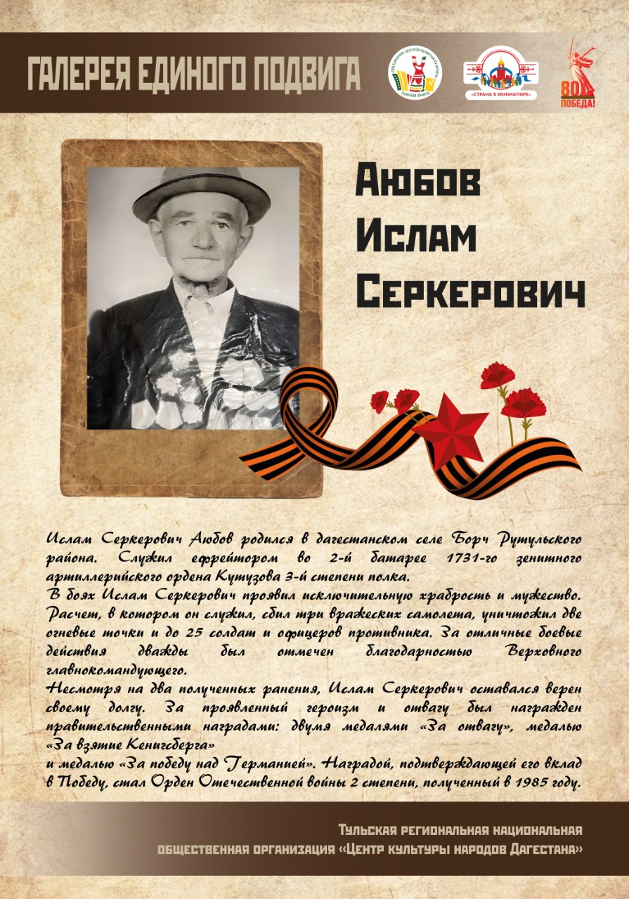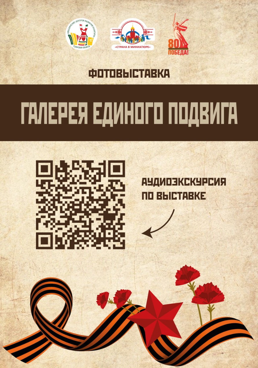 Выставка с аудиогидом «Галерея единого подвига» рассказывает о многонациональном сплочении народа в одну семью перед лицом опасности, вклад каждого народа в единую Великую Победу.